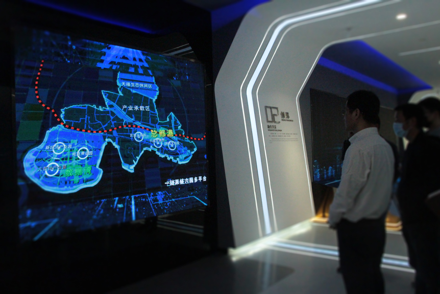 高清大屏播放數(shù)字影片,展示花橋產(chǎn)業(yè)規(guī)劃